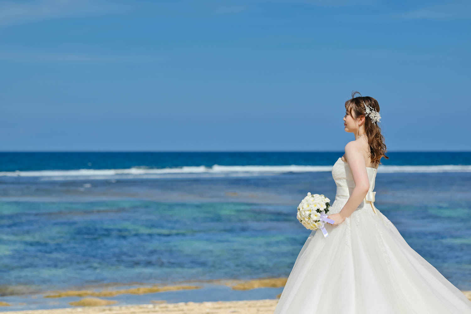 プラン名:フランジパニ・パッケージ(1スポットでの撮影、レンタルドレス、レンタルタキシード 、ご新婦様ヘアメイク、造花ブーケレンタル)