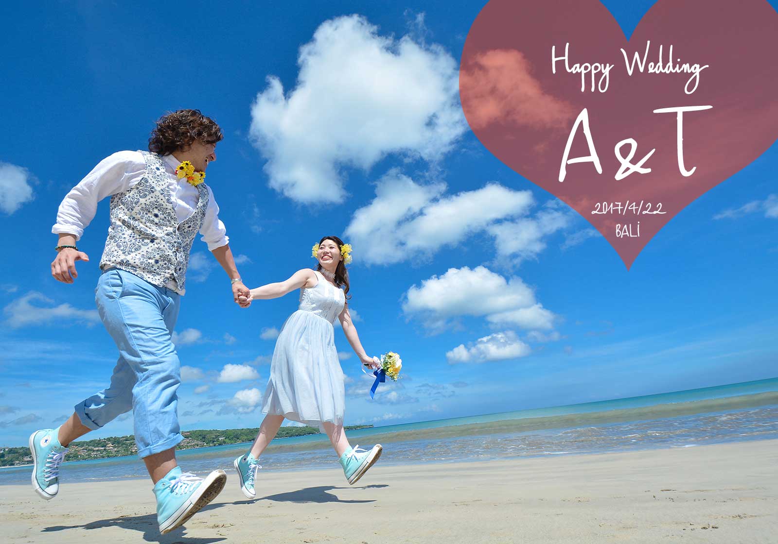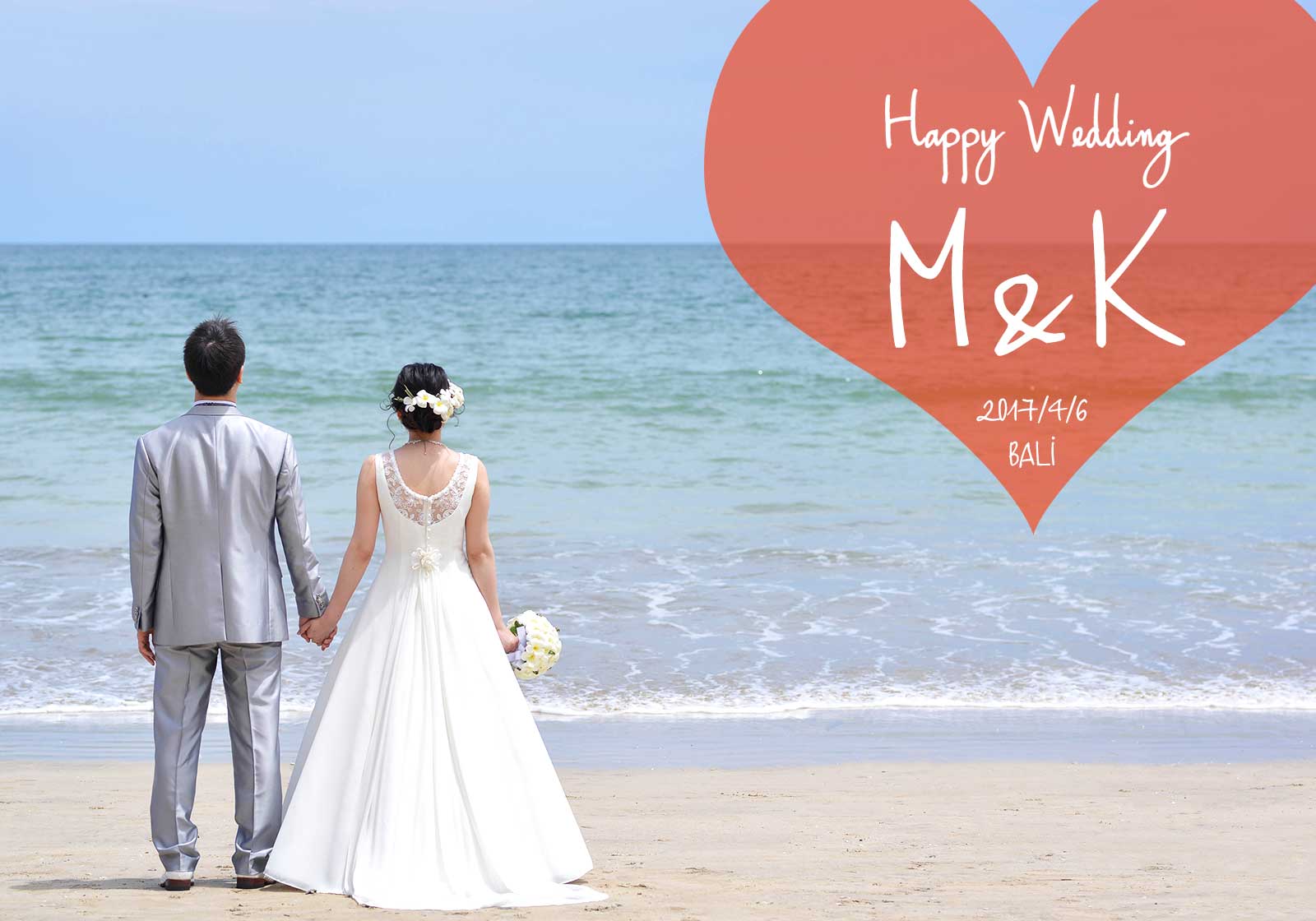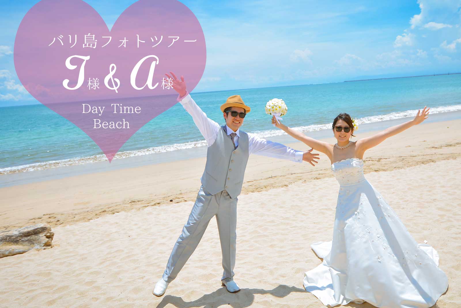 お二人の他にご家族4名様が撮影に同行され、ドレスサロンの車にご家族2名様が、別のお車でもう2名様がジンバランビーチに直接お越しいただきました。