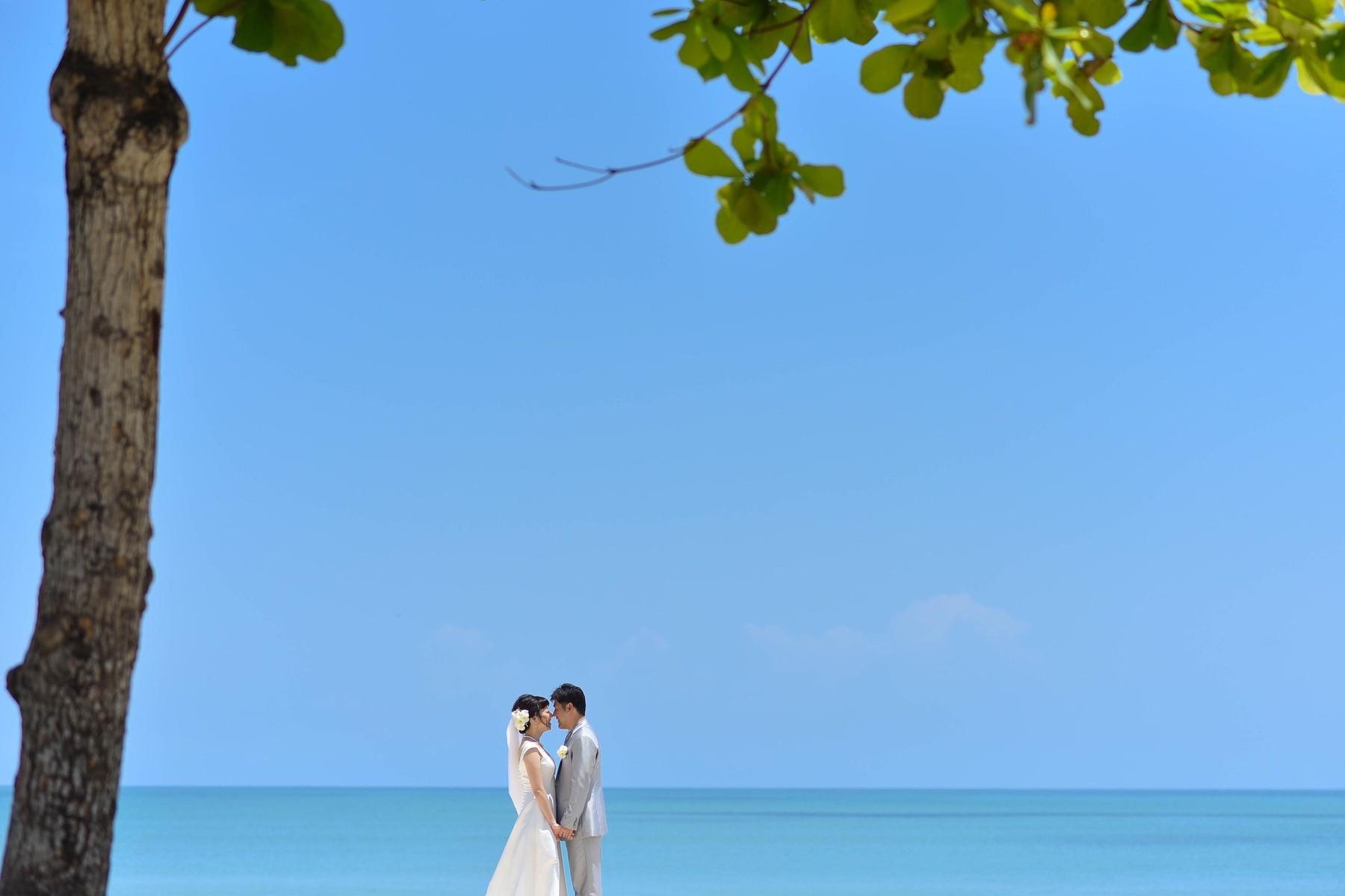 お二人のからのご希望カットは、ビーチでの前抱っこ、手をつないだ後ろ姿、ヤシの木の真ん中ポーズ、フレーム使用、おでこ合わせ、ご新婦様のソロショット、プロップスを生かしたショット、ブーケを主役にしたキスショット、ご新婦様の振り返りショット、指輪の中に入ったお二人などなど、嬉しいリクエストを盛りだくさんでいただきました(^_^)!
