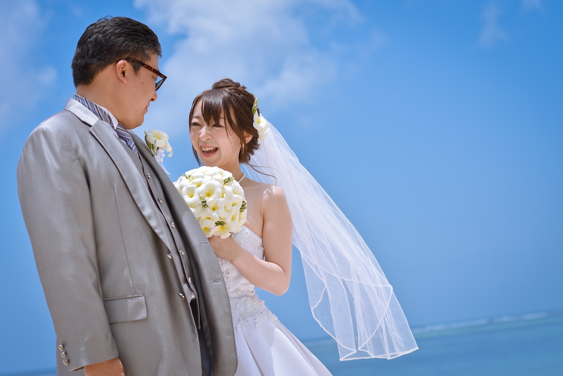 「ビーチを追いかけっこショット」の撮影では、ご新婦様が予想以上に全速力でしたので、ハンデを作ろうと遅めに出発してしたご新郎様とだいぶ遠くまで駆けっこになる場面も ∑(゚Д゚)笑