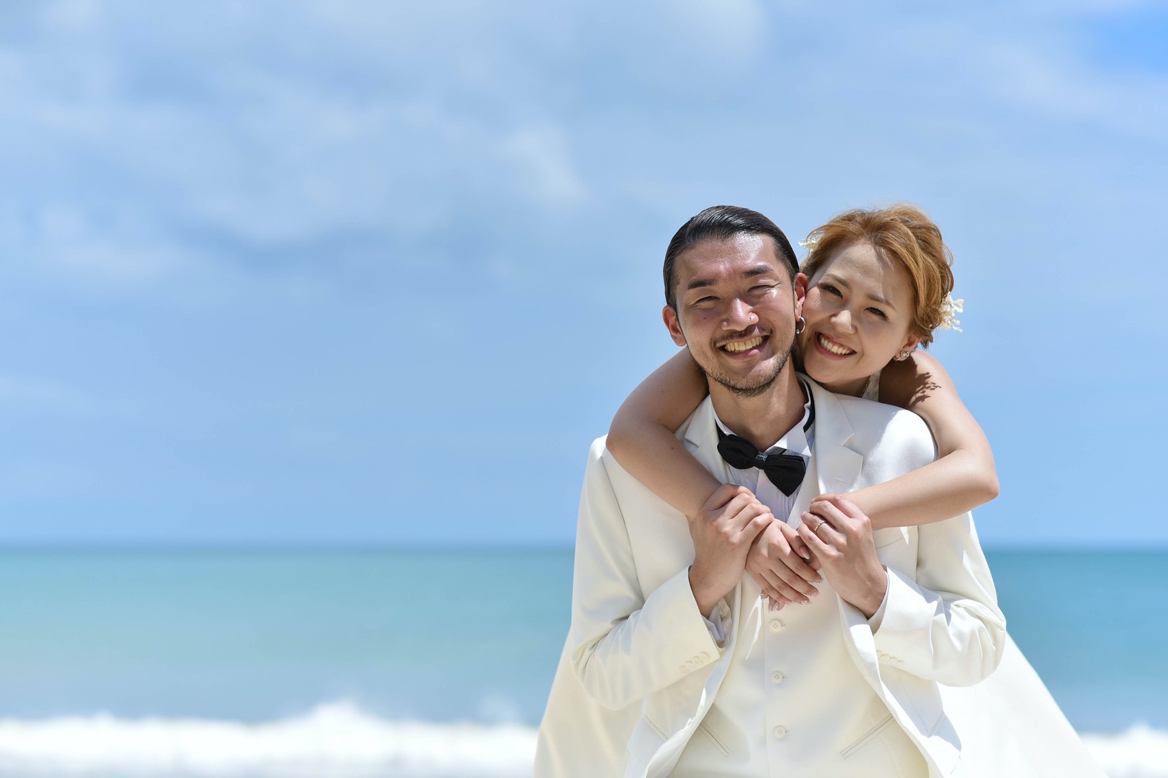 ご家族様もリゾートウェアで撮影に同行され、まずはビーチで撮影。