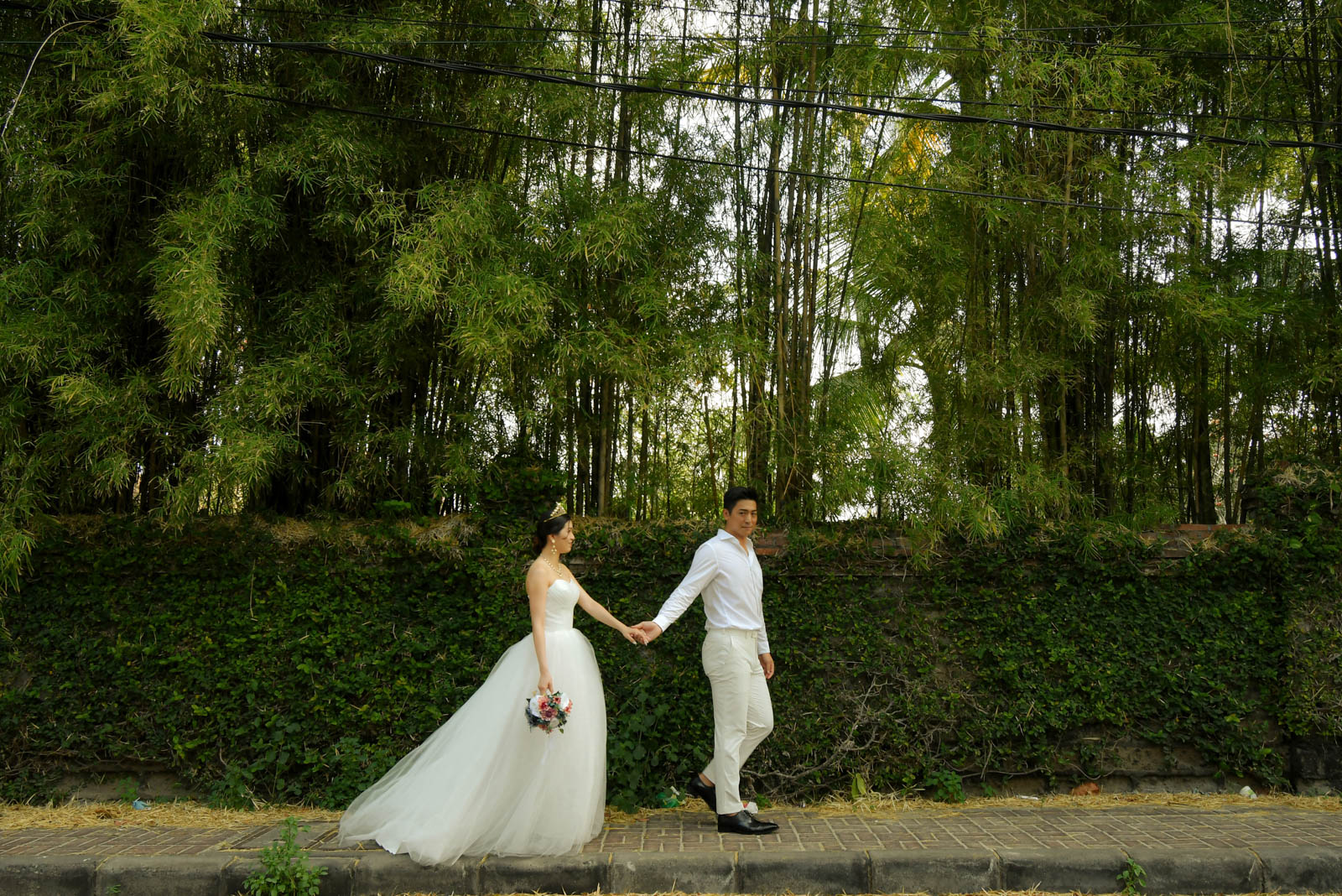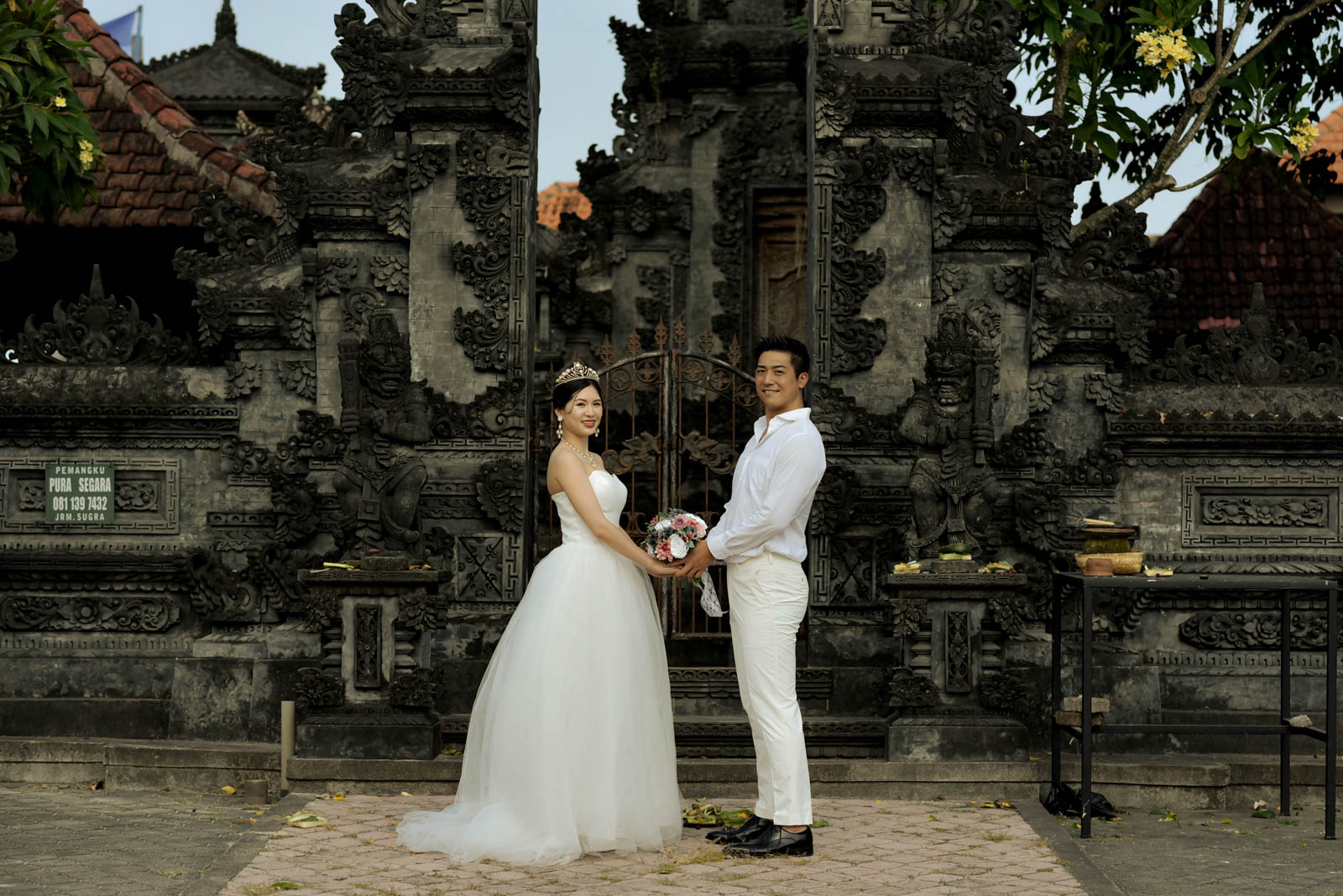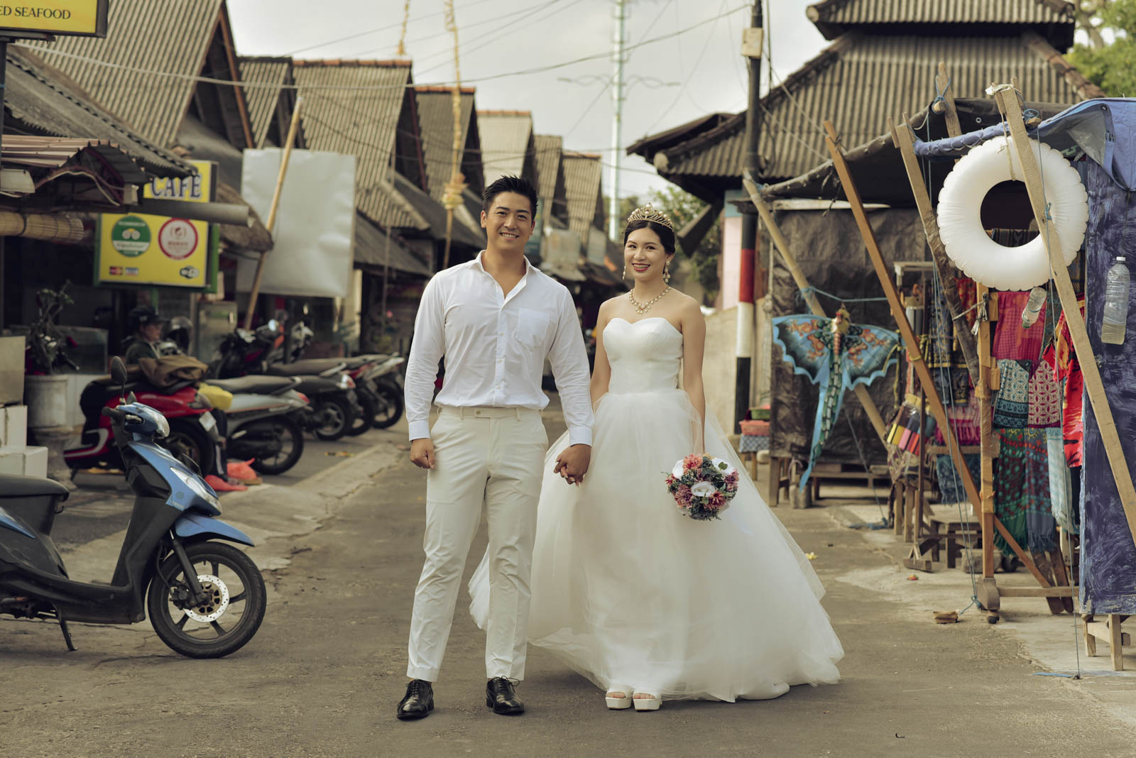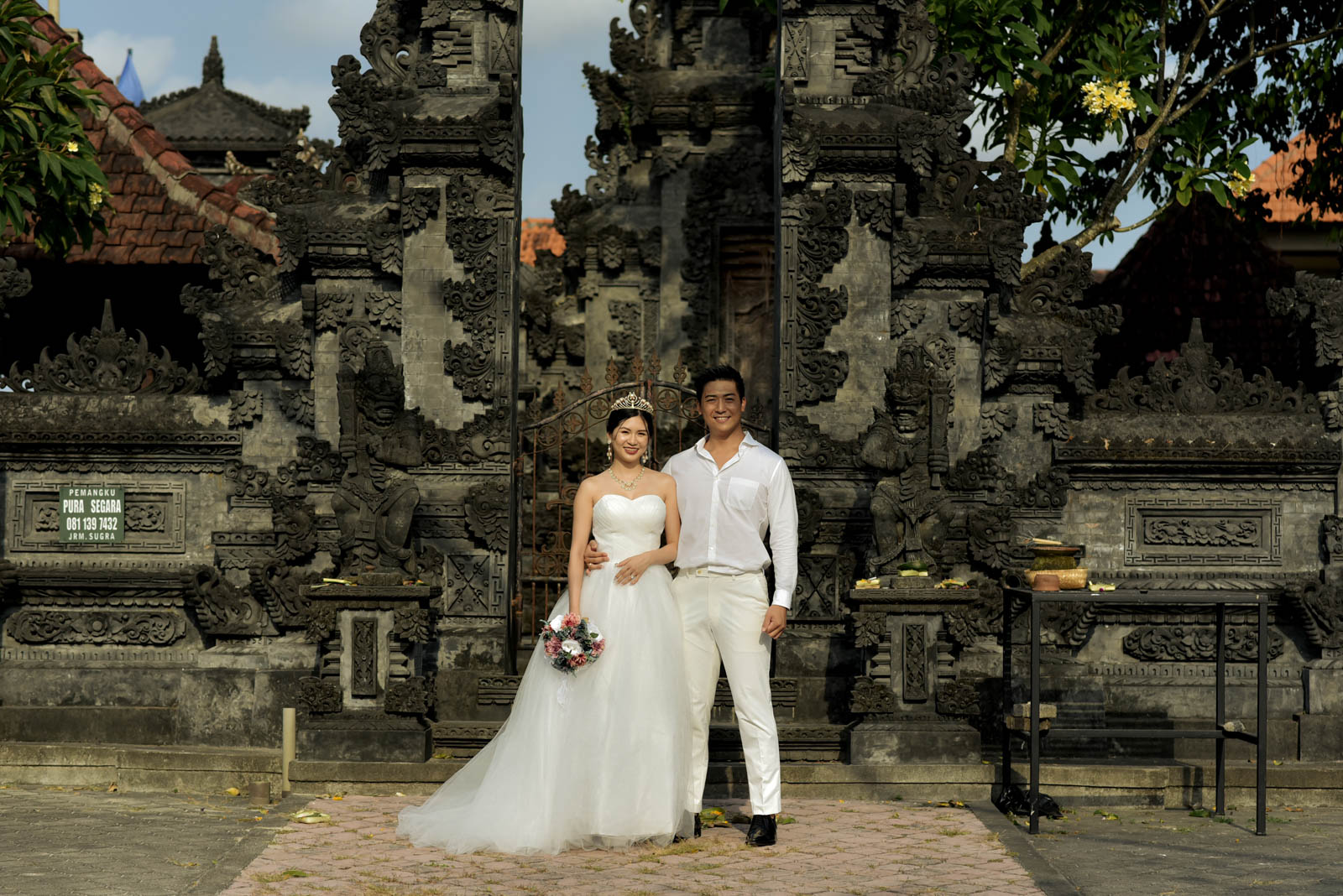 今回はS様とC様とのウェディングフォトについて説明いたします。お二人はお友達の結婚式のためにバリに来ていて、お二人のための撮影も予約してくれました。プランは2ロケーションで、場所は街中とサンセットでした。