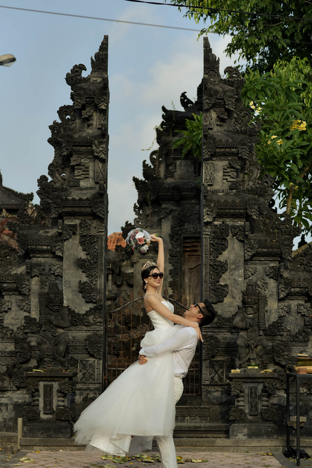 バリ寺院の前でもいろんな写真を撮りました。お二人からリクエストもいただき嬉しかったです。それは抱っこポーズでした!