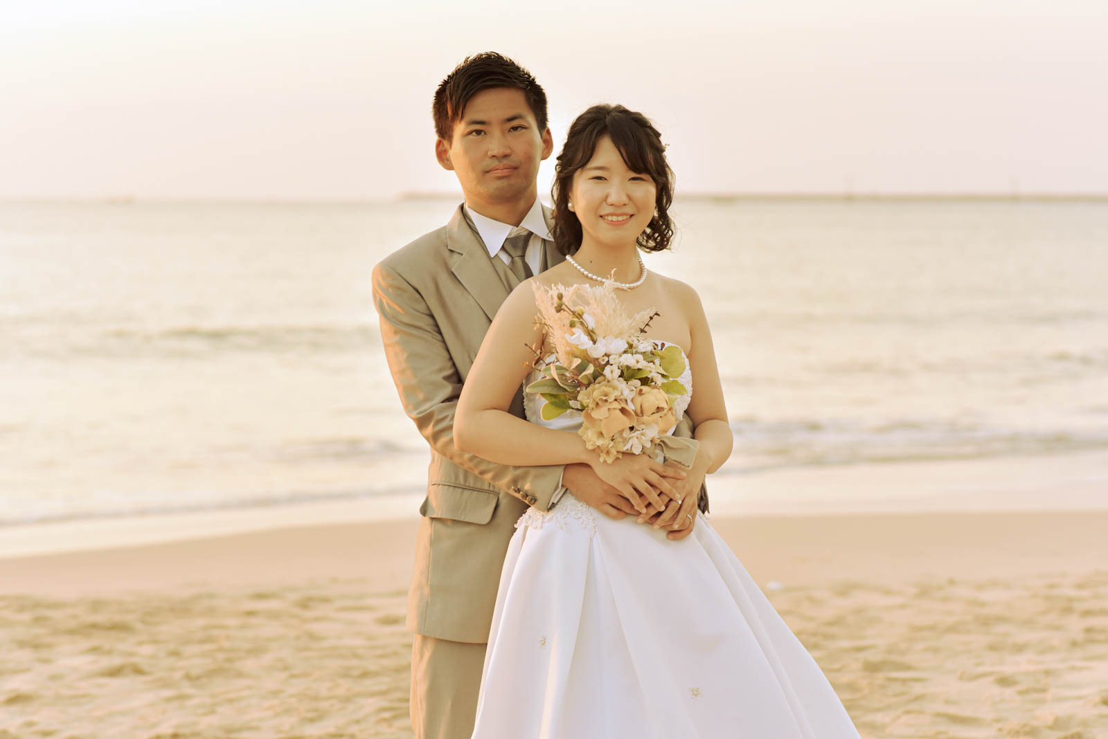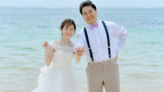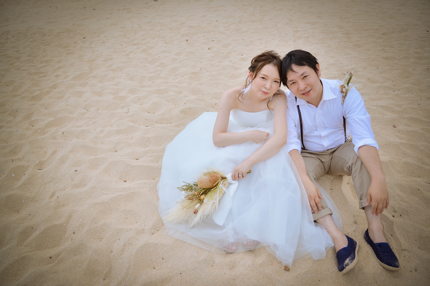 潮が低かったので、海のぎりぎりまで寄って撮影できたのもラッキーでした!小物もいろいろ使って、爽やかで楽しい雰囲気の写真になりました😊