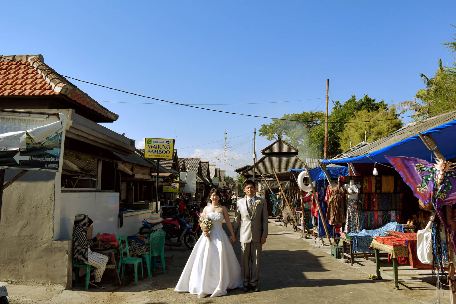 ただ、暑い中での撮影にお二人もちょっとお疲れ…ということで、近くの商店(ワルン)でひと休み。バリのローカルな雰囲気を楽しみつつ、リフレッシュしてまた撮影!落ち着いた雰囲気の写真も素敵でした。